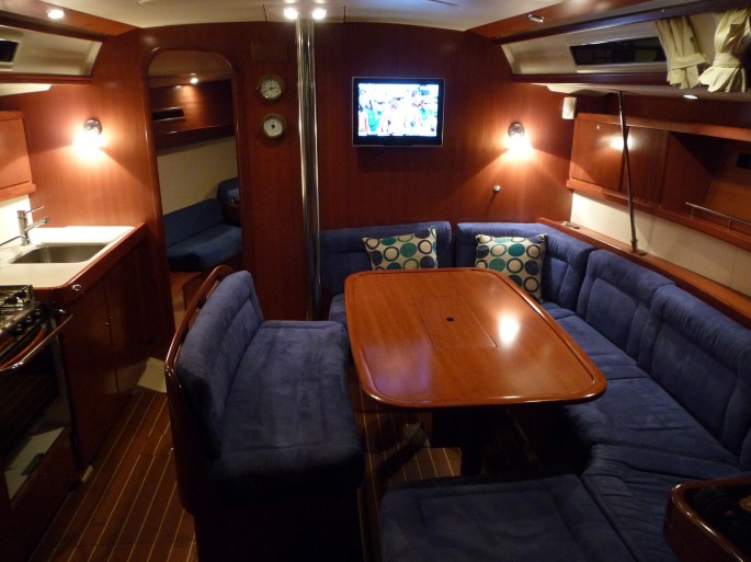 Below, her layout sleeps 8 and includes an en suite main cabin, 2 aft cabins and another head. She provides a practical navigation station with everything you would expect and need to plan your adventure and plot your course and fix your position.